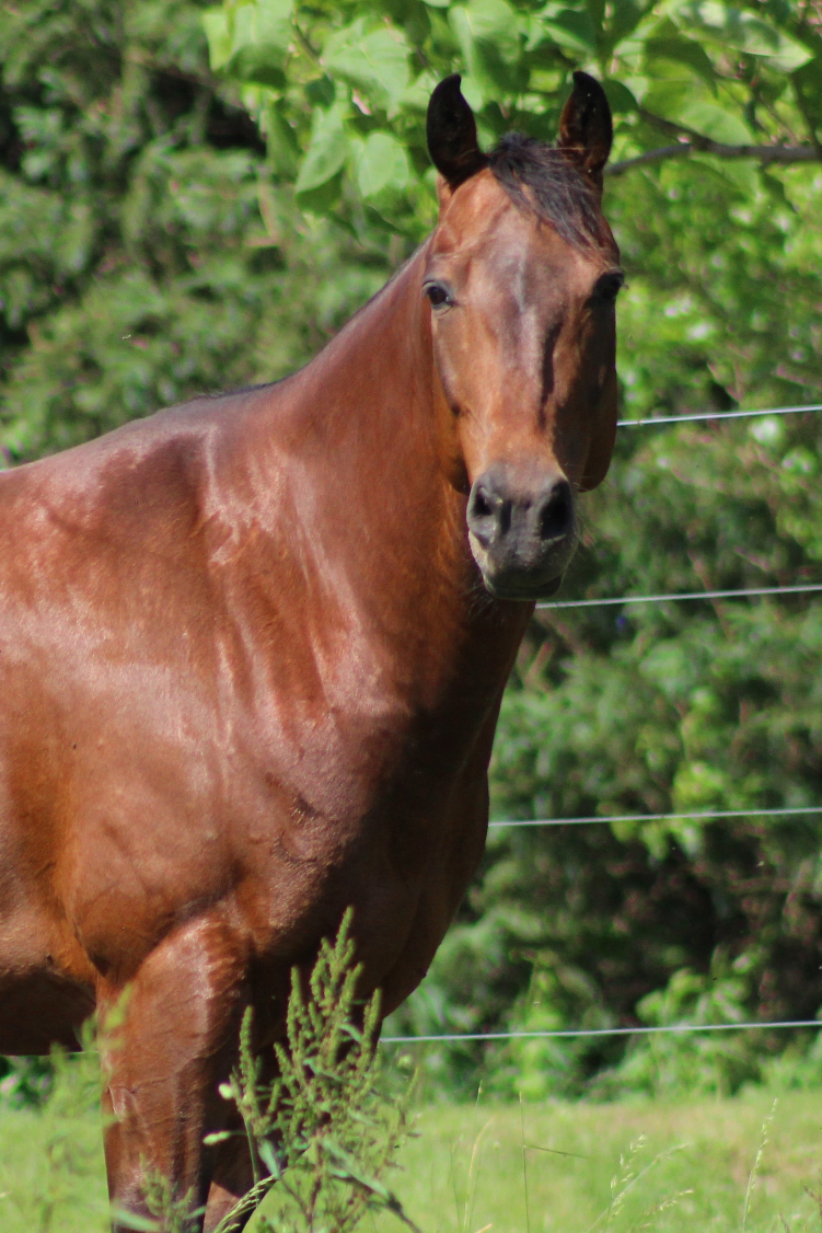Micah is a Dark Bay Quarter Horse gelding. He is great when being worked on by the Ferrier.