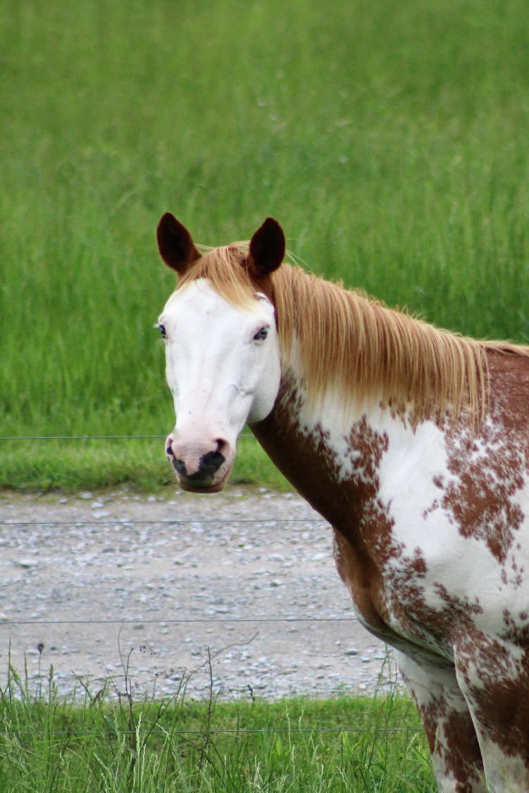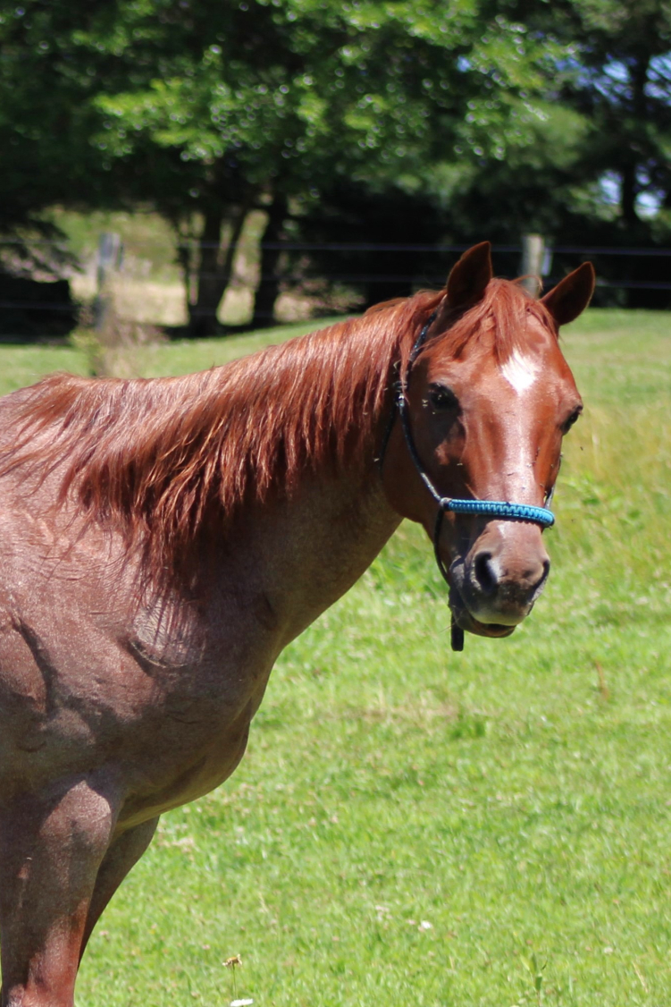 Pie is a Red Roan gelding. He is great when being worked on by the Ferrier. We just got Pie last